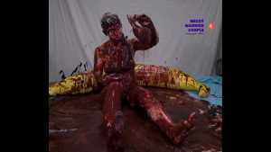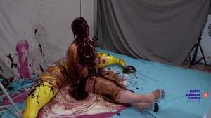 Talk about getting a leaky erection in your pants before even seeing the video! We all know Kate is hot! The scene starts with Kate looking all dolled up and sexy in her pristine white wedding dress. On a mission and determined to trash this dress beyond repair; thick, chunky slime starts falling from above. Kate takes it like a champ as she continuously massages and pushes the slime back up from her dress through her huge breasts. Then she picks up a pie and tears a big portion out of it and rubs it all over her mouth and chin before taking the rest and pieing herself. I swear I almost came in my pants watching her have fun with that poor pie. She then takes a pair of scissors and slices the dress to pieces as it falls of her body revealing her sexy figure and nude breasts. After laying on the floor and rolling in the mess she removes her shoes to show off those very sexy nude feet of hers and even does the bunny pose teasing you with her barefeet! There is also some great ass and sole shots! I only wish Kate would give that awesome ass of hers a bigger leading role as it is so sexy! I couldn't make it to the end of the video with out pleasuring myself to a powerful orgasm. A great scene that is well worth the price and worthy of adding to you collection.