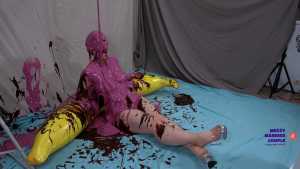 I gave this an excellent review for the fact that you are getting 3 angles for the price. I am a big messy hair fan and the over the top camera was excellent. Seeing Kates blonde highlight hair getting covered in chocolate was hot. The pies had a great consistancy and the chocolate slime also. Loved her dress which went from pristine yellow to chocolate brown. Also Kate enjoyed doing this, rubbing the mess in her hair and covering her dress to soak it with chocolate.